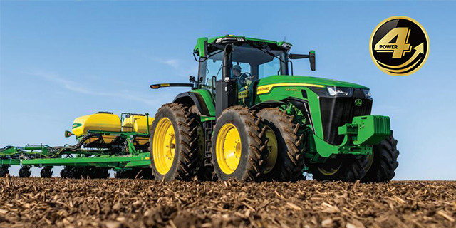 8R拖拉機配備符合國四排放標準的約翰迪爾 9.0升高壓共軌發(fā)動機,